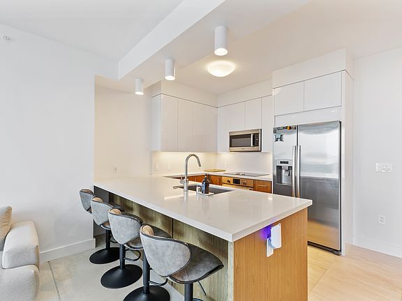 Azure Ala Moana offers resort-style amenities. Enjoy the pool, fitness center, spa, BBQ cabanas, and a club lounge with a kitchen. Additional amenities include a movie theatre, guest suites, a dog park, EV charging stations, and 24-hour security.