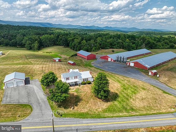 This farm is located on approx. 13 acres with a 3 bedroom and 2 full bath home. Home has a large additional family room with beautiful ceiling beams and a gorgeous stone fireplace with gas logs, smoke house room, mud room, eat-in kitchen and separate dining room and living room. Full bath and laundry room on the main floor. Three spacious bedrooms and a full bath upstairs. Beautiful mountain views from the front porch and the back deck. This property has a paved driveway and detached 2 car garage with electric. Two 70'X300' poultry houses currently in operation with George's Foods. Four feed tanks, generator house, two wells, litter shed/pole barn, other outbuilding with electric, Operating farm equipment to convey with property with acceptable offer.. Call listing agent for more details on the poultry houses and the equipment.