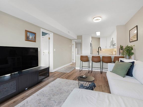 Quick possession on this 4th floor corner unit in Riviera Gardens. Beautiful bright north facing view featuring 2 bedrooms with walk-in closet in the primary bedroom, updated kitchen with quartz countertops + eating bar, open concept living room with access to a covered sundeck, updated 4 piece bathroom, and vinyl planking flooring. Includes 1 parking stall and 6 appliances. This unit is immaculately kept, nicely updated, and move in ready. Great central location close to all downtown amenities.