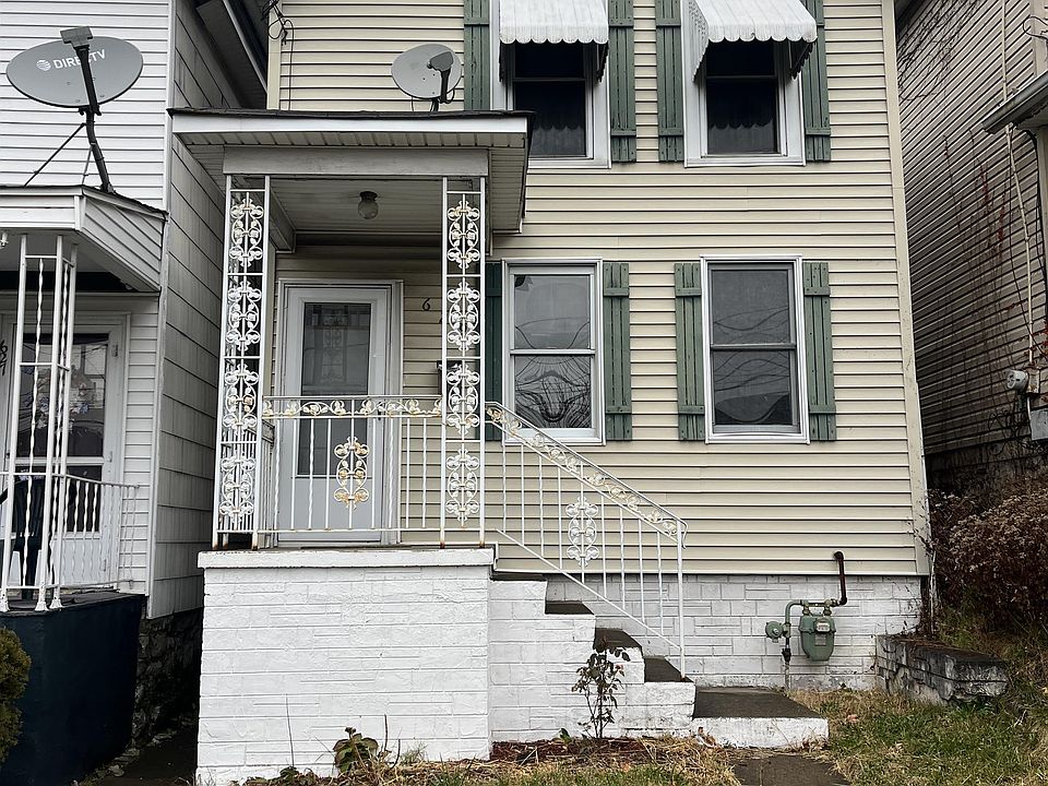 Cozy stand-alone home with great porch and back yard! Large eat-in kitchen, nice sized living room, and rail-road style 2 bedrooms upstairs. Previously rented with a dog-loving family. Small pets accepted. Sorry, no smoking of any kind allowed. Tenant responsible for gas, electric, water and sewer.