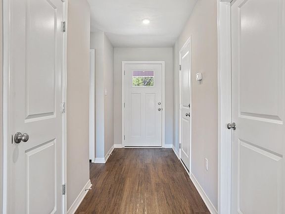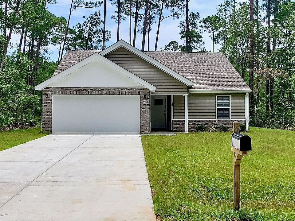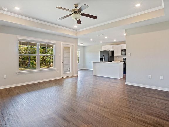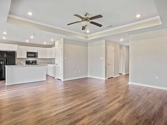 Built in 2020 by Elliott Homes, this 3-bedroom, 2-bath home features an open-concept kitchen and family room with a tray ceiling and crown molding, black appliances including a built-in microwave, dishwasher, electric smooth top stove, and side-by-side refrigerator, granite countertops, and soft-close white cabinetry. The split-bedroom layout provides privacy, with a spacious primary suite including a ceiling fan, double vanity with granite countertops, and a large soaking tub/shower combo, along with a walk-in closet. Enjoy vinyl flooring throughoutno carpet, an inside laundry room that passes through the foyer and primary closet for ease, and a two-car garage with remotes and a keyless entry pad for convenient parking and storage. Covered front and back porches provide additional outdoor living space. Please note: this home does NOT have a fenced yard.