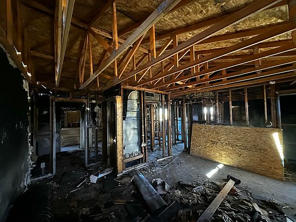 Investor Special. Property had fire damage and has been stripped to the studs -- some major structural work is completed, including new trusses, beams, and framing where needed. Comes with approved plans for a 4-bed, 2-bath, 1,800 sq. ft. home($5,000 Value). Contractor available and ready to bid and begin work.Property to be Sold ''As-Is''.