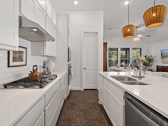 Beautiful custom home: The Bently, built Highland Homes. Many upgrades. Custom door/window coverings on the front door and primary bath windows. Beautiful kitchen, open to dining and family rooms. Additional cabinets above the kitchen standard cabinets with lit boxes and glass doors. Meticulously maintained home, everything looks brand new. Enjoy the covered patio with shade trees. Wolf Ranch is an award winning community with 2 amazing amenity centers. Hike and Bike Trails accessible in the neighborhood. Wolf Ranch Elementary is located in this part of the development: georgetownisd.org/wolfranch