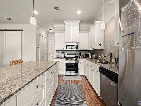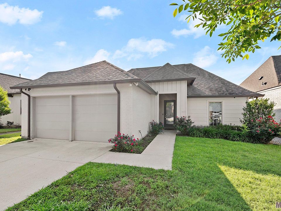 Unique Contemporary home in gated community near LSU. Open floor plan, separate office with sliding barn door, ideal for work or study at home. Laundry room with built in cabinets, large kitchen island, two car garage and much more. Pool and clubhouse are amenities the subdivision offers for its residents to enjoy.
