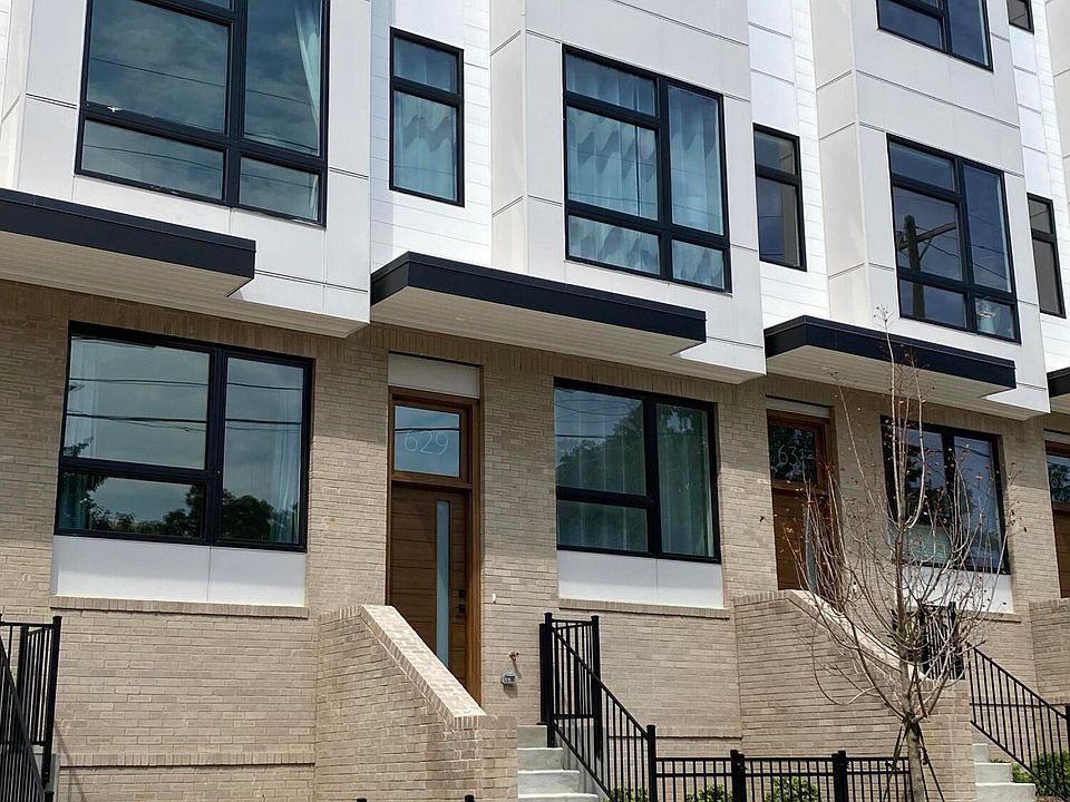 Walk to downtown Durham from this stunning new construction 4-level townhouse. First floor features a foyer and main level office/flex space, 1-car garage with EV charger and rear entry. The main living area is on the 2nd floor which features an open floor plan with living room, dining room, kitchen, balcony, and half bath. Chef's kitchen has a gas range, high end stainless steel appliances, quartz countertops, and euro-style white, high-gloss cabinetry. 2 more spacious bedrooms, each with a private bath, are on the 3rd floor. Walk up the steps to the 4th floor rooftop deck which has panoramic views of downtown Durham. This unit is fully furnished. Owner pays utilities and HOA dues. Central heat and air. Stack washer/dryer. Owner/HOA takes care of repairs, maintenance, and landscaping. No smoking anywhere on the premises. No pets.