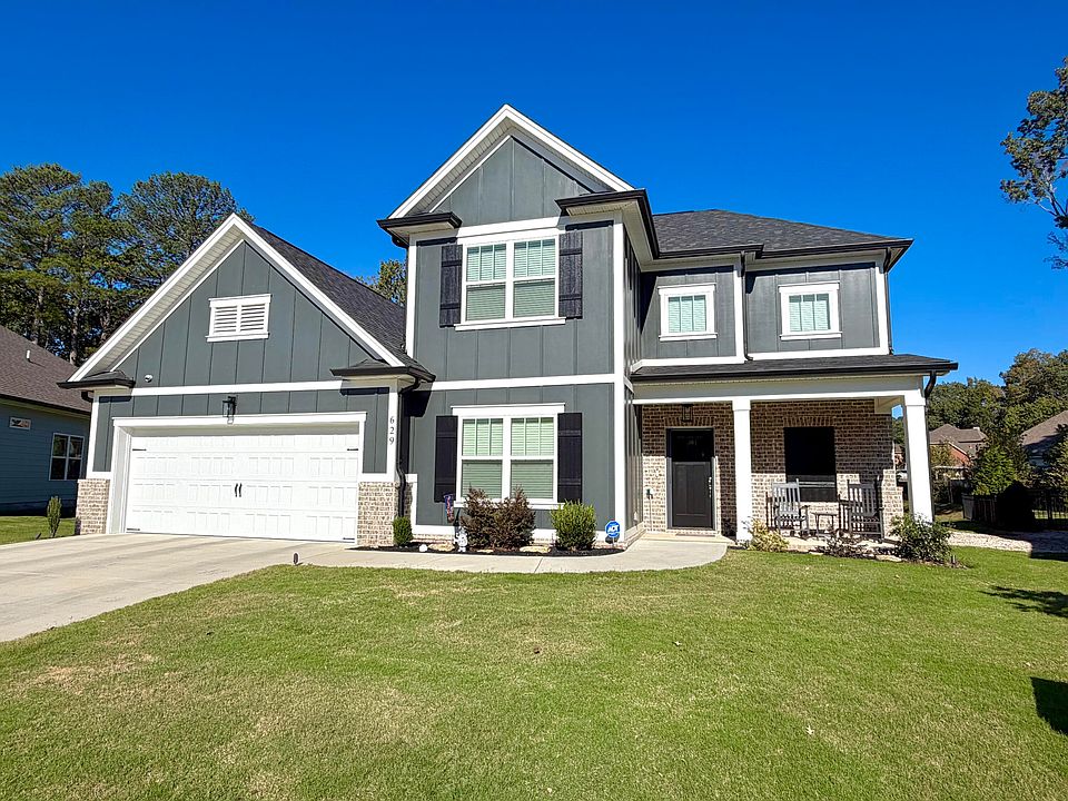 The primary suite is thoughtfully tucked away for privacy and includes a spacious en-suite bath and a generous walk-in closet, conveniently located near the laundry room. Enjoy your morning coffee or evening cookouts on the covered patio just off the dining nook, offering the perfect spot to relax or entertain. Upstairs, you'll find a large bonus space—perfect for a media room, playroom, or home gym—along with two additional bedrooms and a full bath, providing plenty of room for everyone.