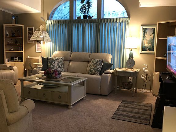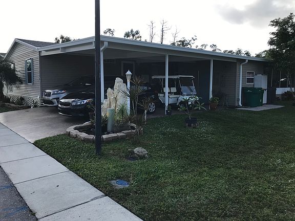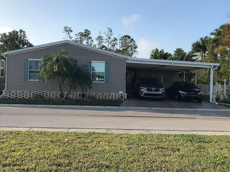 Beautiful three bedroom two bath home located in Tall Oaks, a 55 and up, an age-restricted community in South Naples. This community is gated and lot rent is only $517.00 per month which includes sewer, lawn mowing, garbage pickup, basic cable and use of all amenities. There are six beautiful lakes in this community with its own private fishing pier for residents to enjoy! Two pets are permitted per home and community approval is required before purchasing. Some of the great features of this home are as follows: WIDE OPEN FLOOR PLAN WITH VAULTED CEILINGS THROUGHOUT, BASEBOARDS AND CROWN MOLDING, GRANITE COUNTERTOPS IN KITCHEN WITH UPDATED CUPBOARDS, NEWER APPLIANCES AND DEEP DOUBLE STAINLESS STEEL SINK, LARGE MASTER BEDROOM WITH ENSUITE BATHROOM WITH LARGE GARDEN TUB, DOUBLE DOOR SHOWER, AND BEAUTIFUL DOUBLE SINK VANITY. THIS SPLIT PLAN CONCEPT HAS THE TWO GUEST BEDROOMS ON THE OTHER SIDE OF THE LIVING ROOM FOR ADDED PRIVACY. OUTSIDE THROUGH THE DOUBLE SLIDING GLASS DOORS IS AN EXCEPTIONALLY NICE 20 X 17 FOOT SCREEN ENCLOSED LANAI. THE OVERSIZED DRIVEWAY AND CARPORT HAS ENOUGH ROOM FOR FOUR CARS IF NEEDED AND A OVERSIZED SHED OFF THE CARPORT. THE HOME HAD A NEW ROOF IN 2018. This home is being sold unfurnished but all major appliances are included along with all the attractive window treatments. Call or text for more information and to schedule an appointment to personally view this home.