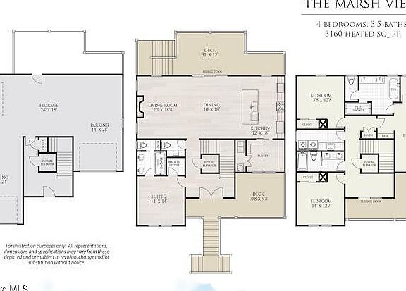Completed & Move In Ready! Discover refined living in this stunning new construction home, offering 4 bedrooms, 3.5 bathrooms, and a spacious 3-car garage on a .23-acre lot in the desirable Marsh Landing Place community. Designed for those who value elegance and privacy, this home is uniquely positioned with protected land in front and behind, ensuring unobstructed wooded views and a serene, natural backdrop for years to come. Step inside to 3,160 sqft of impeccable craftsmanship, featuring an open-concept layout, high-end finishes, and two luxurious master suites. The main living area showcases LVP flooring, electric linear fireplace, custom built-ins, and an elevator shaft for future accessibility. The gourmet kitchen is equipped with quartz countertops, solid wood cabinets extending to the ceiling, soft-close cabinets, stainless steel appliances, and an oversized butler's pantry with a prep sink. Sliding glass doors lead to a spacious deck, perfect for relaxing or entertaining. The impressive first-floor master suite includes a large walk-in closet and an en suite bathroom with dual vanities and a fully tiled walk-in shower. Upstairs, the primary master suite offers private access to the top-floor deck, a generous walk-in closet, and a luxurious en suite bathroom with a fully tiled walk-in shower, a freestanding soaking tub, and dual vanities. The upper level also includes two additional bedrooms, a third full bathroom, and a conveniently located laundry room. Additional features include architectural roof shingles, 9-foot ceilings, and a fully landscaped yard. Your private backyard overlooks the lush tree line, while the front yard offers an unobstructed view of a natural common area. Located within a short golf cart ride to an array of shopping, dining, and entertainment options, Marsh Landing Place is a lush, wooded community with walking trails, a resort-style pool, and a community clubhouse. Builder is offering $10,000 Use As You Choose Credit!