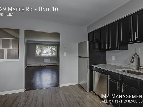 Z on Maple Apartments features a welcoming top-lit courtyard and ivy-covered brick, giving it a more classic and down-to- earth feel than most properties. Our beautifully detailed two bedroom floor plan is 925 square feet and comes w/custom-quality amenities throughout such as brand new finished walnut stained hardwood floors, updated kitchen w/custom cabinets, brand new stainless steel appliances and marble grecian subway tiled backsplash, freshly painted. Large bedrooms in unit, The community is in a choice location near restaurants, pubs, clubs, salons, parks and retail shops in Birmingham, Clawson, Royal Oak, and Troy. Located just down the street from the upscale retail district in downtown Birmingham and I-75. Features include, Additional storage, dual-entry doors, east-west exposure, free parking, very clean on-site laundry, secure hallways. Minimum 1 year lease.