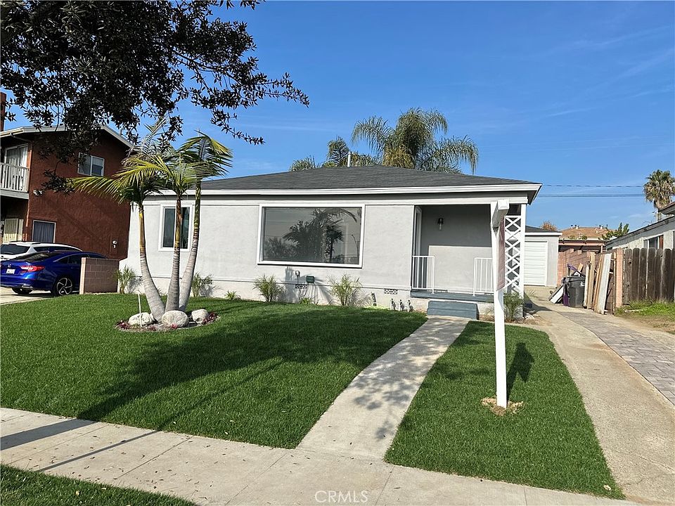 Completely remodeled 3 bedroom 2 bath with enclosed patio and 2 car detached garage. New paint in and out, new kitchen cabinets, new stove, microwave and dishwasher. New vanities, toilets, bathtubs and tile in bathrooms. All new windows, roof, garage door, interior and exterior doors and laminate flooring. Brand new central air conditioner and heater. Also has brand new sprinklers, grass and plants in the front yard. This home is beautiful and ready to move in, show your buyers they will fall in love.
