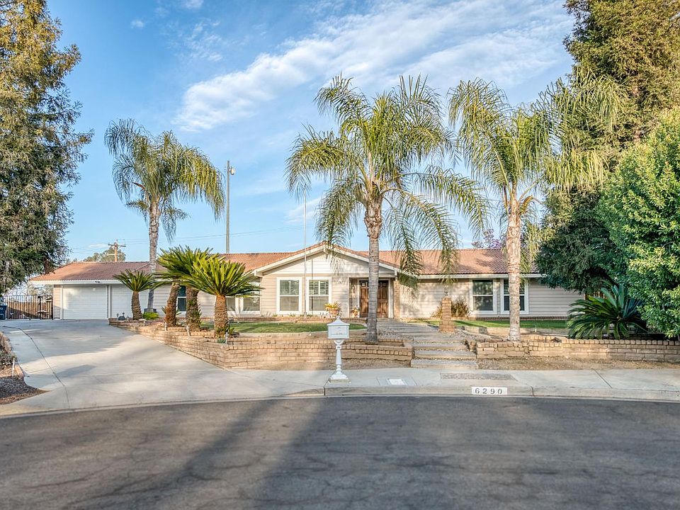 Attractive and recently upgraded with new siding, this California ranch home sits on a large and comfortable lot with mature landscaping and RV parking. The backyard features a pool and spacious covered and tiled patio with plenty of room for backyard entertaining.The grand stepped entrance in the front yard leads to a double door entryway and opens into a pebbled foyer; to your left is a separate formal dining space and straight ahead is a spacious tiled living room, with gorgeous wooden beams and large floor to ceiling windows across the wall complemented by a fireplace. The kitchen opens into the living room and a sizable eating area; it has a large breakfast bar, complete with real wood cabinets, a 6 burner Viking gas stove, double stacked ovens, and a pantry.To the right of the entrance is the primary living area hallway with storage space that leads to the primary bedroom and the second bedroom. The bathroom was remodeled in the last couple of years and a walk-in closet was built. This side of the home also has a nice laundry room that leads to the backyard. On the opposite side of the home is the third bedroom and an additional bathroom. Follow the door out the garage and you will find yourself in a finished garage including 240v power! The backyard also features an additional storage unit and has room to accommodate much more storage on the substantial concrete. Schedule a showing today, homes in this desirable neighborhood are very rarely available!