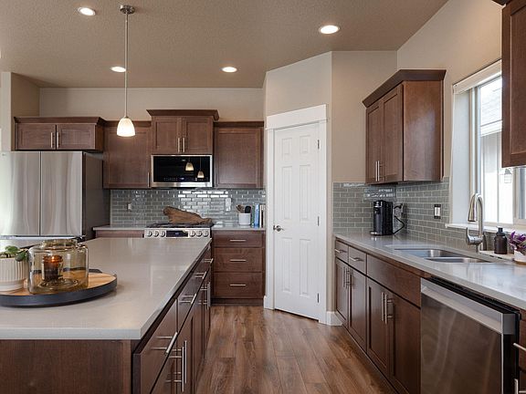 One of Bend's most sought-after neighborhoods. Corner-lot home has curb appeal w/ beautiful landscaping & prime location across from park/greenbelt w/ walking paths & playground. HOA includes pool & front yard maintenance. Open floorplan w/ gorgeous LVP flooring throughout main living area. Living room w/ brick fireplace & sliders to backyard for indoor-outdoor living. Gourmet kitchen with brand-new SS appliances, pantry, & large island w/ eat bar. Half bath completes main level. Upstairs primary suite w/ tray ceiling, walk-in closet & private bath w/ dual vanities & walk-in shower. 2 more bedrooms, guest bath w/ tub/shower & upstairs laundry room complete upstairs. Fully fenced backyard w/ large patio, low-maintenance turf & gas hookups. Sprinkler system in front yard & in backyard for the garden. Close to shopping, dining, parks & Pine Nursery Park w/ hiking trails, this is Bend living at its best.