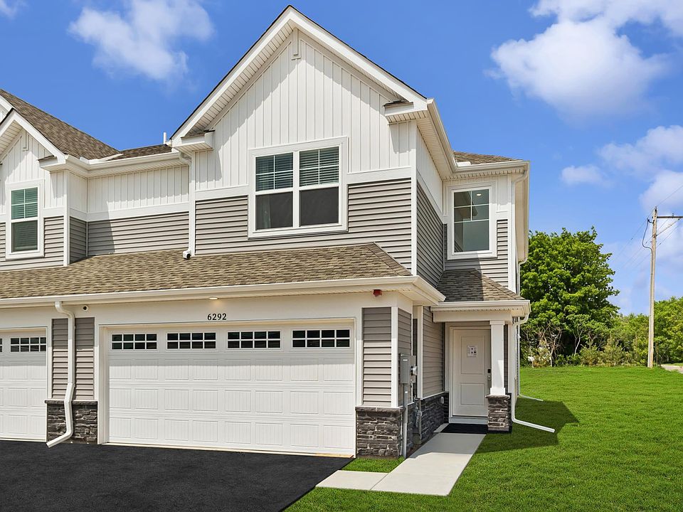 Welcome to the St. Clair model, an end-unit townhome in the sought-after Shadow Creek Estates community! This elegant two-story design offers modern living with plenty of natural light and an open-concept layout. The main level features a spacious Great Room with an electric fireplace, a bright dining area, and a stylish kitchen with quartz countertops, stainless steel appliances, and generous storage. Sliding glass doors lead to a patio—perfect for outdoor dining or relaxation. Upstairs, the serene owner’s suite includes a private bath and walk-in closet, joined by two additional bedrooms and a full bath. A two-car garage with a convenient mudroom entry completes this beautiful home. Enjoy the charm of Forest Lake with top-rated schools, nearby parks, lakes, shopping, dining, and easy access to Hwy 61 and I-35. Come tour this stunning new model today!