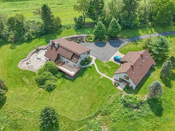 Spectacular 11+-Acre Property Overlooking Camp Woodward Experience the ultimate blend of luxury and nature with this stunning 11-acre estate, perched above the breathtaking ridges and valleys surrounding Camp Woodward. The main house boasts 5 bedrooms, 4 baths, and a massive patio, with outdoor grill and fireplace.. perfect for soaking in panoramic views. There is additional detached guest house, workshop garage, and stables. Main House Highlights: Grand Living Space: Step into a first floor with soaring 25-foot vaulted ceilings, a dramatic double-sided fireplace crafted from locally sourced stone, and an open, airy layout. Gourmet Kitchen: Enjoy cooking in the well-appointed kitchen featuring a Wolf gas stove, Bosch dishwasher, and ample space for entertaining. Convenient Layout: The main floor also includes two bedrooms (one ideal as a home office) and a full bath, offering the possibility of single-floor living. Lofted Rec Room: Upstairs, find a lofted recreation room with a pool table and a third fireplace, perfect for cozy gatherings. Private Retreats: The upper level houses two additional guest rooms, a full bath, and an expansive owner's suite with an attached craft/office space overlooking the valley. Finished Basement: The basement includes a wine cellar, an office, and another full bathroom. Property Features: New Roof & HVAC: The main house is equipped with a new shingle roof (2022), mini-split AC/heating units, and a new oil furnace (2021). Guest House: A separate 2-bedroom, 2-bath guest house offers privacy and comfort, with its own kitchen, central AC, and a heat pump for winter warmth. Equestrian Facilities: The property includes a large 2-car garage/workshop and 5 horse stables, making it a dream for equestrian enthusiasts. Don't miss the chance to own this genuinely spectacular property. Schedule your visit today!