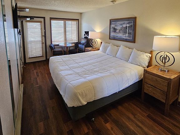 The Inn has a heated outdoor pool, 4 hot tubs, a gym, a game room, a family room, a barber shop, several laundry rooms, and an US post office.