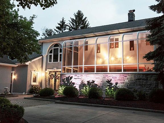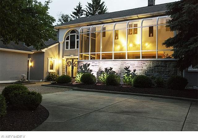 Secluded, beautiful 3.02 ac lot in the heart of Mentor. across the bridge over the creek on the winding drive to the destination on the hill, feel as if you have entered the Metro Parks, Contemporary stucco & stone grace this unique beauty w/oversize, designer windows, circular drive w/brick highlights, peaceful 16' Koi pond w/rushing waterfall, expansive multi-level deck overlook rolling, private scenic views. Etched dbl door w/glass block side lights entry to a welcoming marble foyer, HW & marble vaulted Grt rm w/center black marble F/P attached step-up 20' arched glass atrium w/wet bar & tons of natural light. Urban-looking exposed venting in white, vaulted E/I kit w/granite breakfast bar, planning desk, stainless appl, subway tile & ceramic floor. French drs to vaulted formal DR. 1st flr laundry, 9' mud rm by back entry. 2 BR w/corner windows make up level one. Modern glass staircase to upper loft w/walkway w/Grt rm views & artwork display cutouts, vaulted Mstr suite w/jetted tub, glass block shower, skylights & 12' walk-in w/closet system, private bdrm w/half bath for guests. LL walk-out Fam rm w/built-in entertainment unit, greenhouse window & wet bar. LL bdrm w/slide doors to brick patio+storage rm, 3 car gar, security system, New roof 11/2015. Meticulous landscaping w/lighting. A wonderful non-traditional show place retreat. Impeccably maintained w/open flr plan for the most discriminating buyer. Home Warranty. Fresh paint, carpet, new HW tank, fridge & stove in 2019