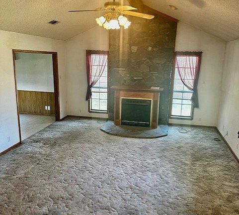Looking for a place to enjoy country living with room for horses or other animals, then take a look at this one and a half story ranch style home built in 1990, on 7 fenced & cross fenced acres. The covered front & back porches and the large front yard are perfect for spending time and entertaining. As you enter through the front door, the vaulted beamed ceiling is first enhanced by the stairway leading to a bedroom, then across the room by the gas log fireplace sitting on a stone base with a floor to ceiling stone chimney centered between two windows. The kitchen and dining area has ample space for cooking or sitting at the table or breakfast bar with family and friends. As you leave the kitchen, there is an under the staircase closet. The primary and 2nd bedrooms are down the hall. Primary has double closets and a primary bathroom with a tub shower combo. A 2nd bedroom has a nice closet and 2 windows for natural lighting. An additional bathroom is located in the same area and has a walk-in shower stall. The 3rd bedroom is located upstairs with a window looking south toward the barn. The laundry room has a closet, built in ironing board, washer dryer hookups, & a place for an upright freezer, as well as a door leading back outside to the detached 2 car garage sitting across the driveway. A storage shed and carport are also located in the yard. The 4-stall barn with an extra wide hallway, has electric and water, a tack room, a hay storage area built off the north side, and a fenced lot on the south side. Two loafing sheds provides shelter for your animals out in the pasture. Schedule your showing today and take a look at this home to appreciate all it has to offer. It is being sold as is but is livable now. Vision your own personal touch when viewing. All info deemed accurate, buyer & buyer representative to verify all information. Dianna Whitlock, listing agent, is a Texas Licensed Real Estate Agent & has an ownership interest in this property.