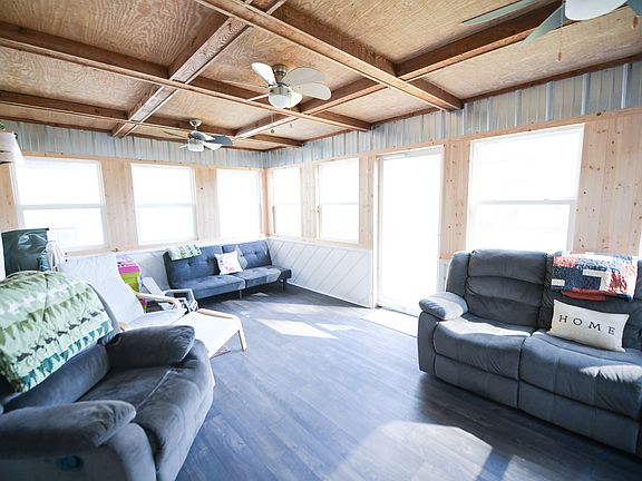 Ever dream of owning a house on a tranquil lake? If the answer is YES, than check this out. This well-maintained lake home has 1104 sq. ft. of living space, offers 2 bedrooms, 2 full baths, and more. Beautiful views of the 33-acre private lake can be experienced all throughout this waterfront property. The Kitchen has been recently updated with custom wood countertops, massive farmhouse sink, large breakfast bar and an open concept to the dining room and sunken living room. The spacious living room offers cedar plank walls, a gas freestanding stove and doors that lead out to the 12x20, 3 seasons room which is full of windows. Both bedrooms feature private baths and have also been fully updated. It's easy to see why this 1 acre lot is one o