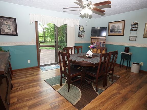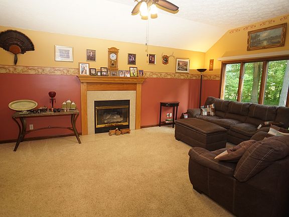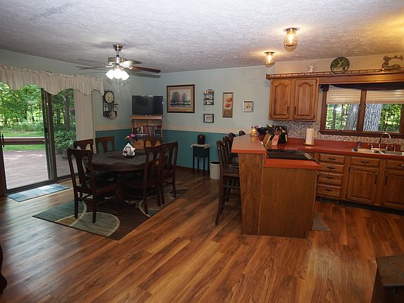 Nice Cedar/stone home situated on 3.5 wooded acres, pond and privacy. Enjoy evenings on large deck with firepit. 24x40 pole barn with a 13x25 workshop with concrete floor. Beautiful entry kitchen has large eat-in area & laminate floors. Great room has vaulted ceiling and stone fireplace.