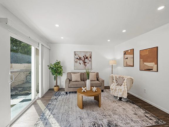 Stunning, Upgraded Mission Valley Townhome – Move-In Ready! Welcome to this beautifully remodeled Mission Valley townhome, where modern style meets everyday comfort. The updated kitchen boasts elegant finishes, granite countertops, a deep stainless-steel sink with a pull-down faucet, and newer dual-pane windows and a sliding door. Throughout the home, enjoy LED lighting with Wi-Fi connectivity, new laminate flooring, new appliances, and fresh interior paint. Enjoy your own private, gated patio surrounded by lush greenery — the perfect spot for morning coffee or relaxing after a long day. With no neighbors above or below, this home offers an exceptional sense of privacy and comfort. The well-maintained community - amenities, including pool, spa, and clubhouse. Water and trash are conveniently included in the HOA dues for easy living. Ideally situated near all that Mission Valley has to offer — including Costco, IKEA, Snapdragon Stadium, the trolley line, and top-rated dining and shopping — plus quick access to freeways 8 and 15. Don’t miss the opportunity to call this stylish townhome your new home!