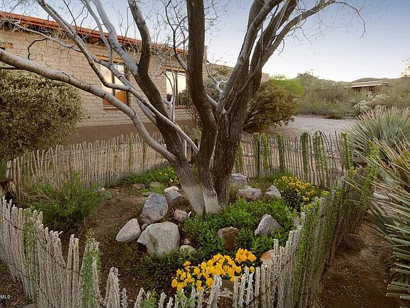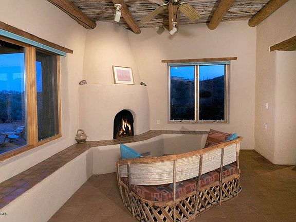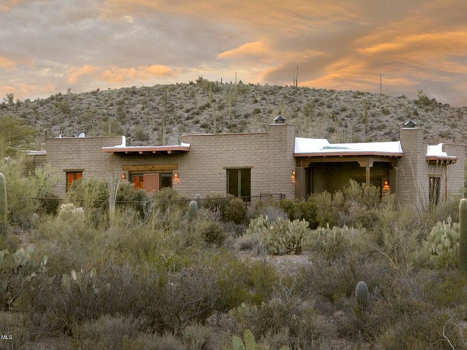 Lovely Bob Barnes Adobe Territorial on 3.3 acres nestled in the Tucson Mountains. Charm abounds in this Randy Oden built house complete with vega beams and saguaro rib ceiling, tumbled brick floors, two beehive fireplaces, beautiful mountain views from south facing rooms. Enjoy stunning city lights from master as well. Loads of privacy in the backyard...Enjoy - truly a delight!