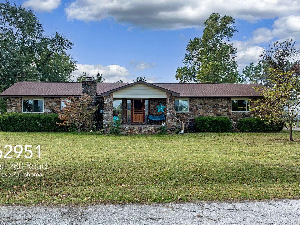 Beautiful 1 Acre Rock Home with Awesome Sunsets of the Countryside! This Fabulous 3bed/2ba and attached 2car garage home is located very near the high school in Grove, just outside the city limits, and only 10 minutes from Grand Lake access! Suitable for VRBO! Almost new windows and Luxury Vinyl Flooring throughout the home! Large, fenced backyard perfect for building your dream pool or for your large pets! Split Master Suite and large, open living, dining with oversized kitchen! Perfect for any family!