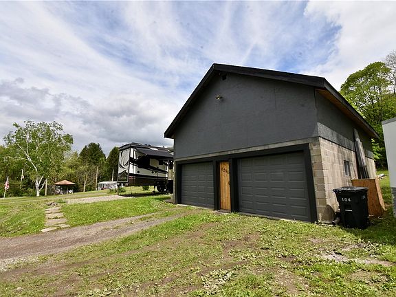 The property is RV- and tiny-home-friendly, with a gravel pad ready for parking and electrical capacity that can be adapted for a mobile home or tiny home setup. The septic system is already equipped with a Y-connection, offering convenient RV/trailer hookup and the potential for a future bathroom addition in the garage.