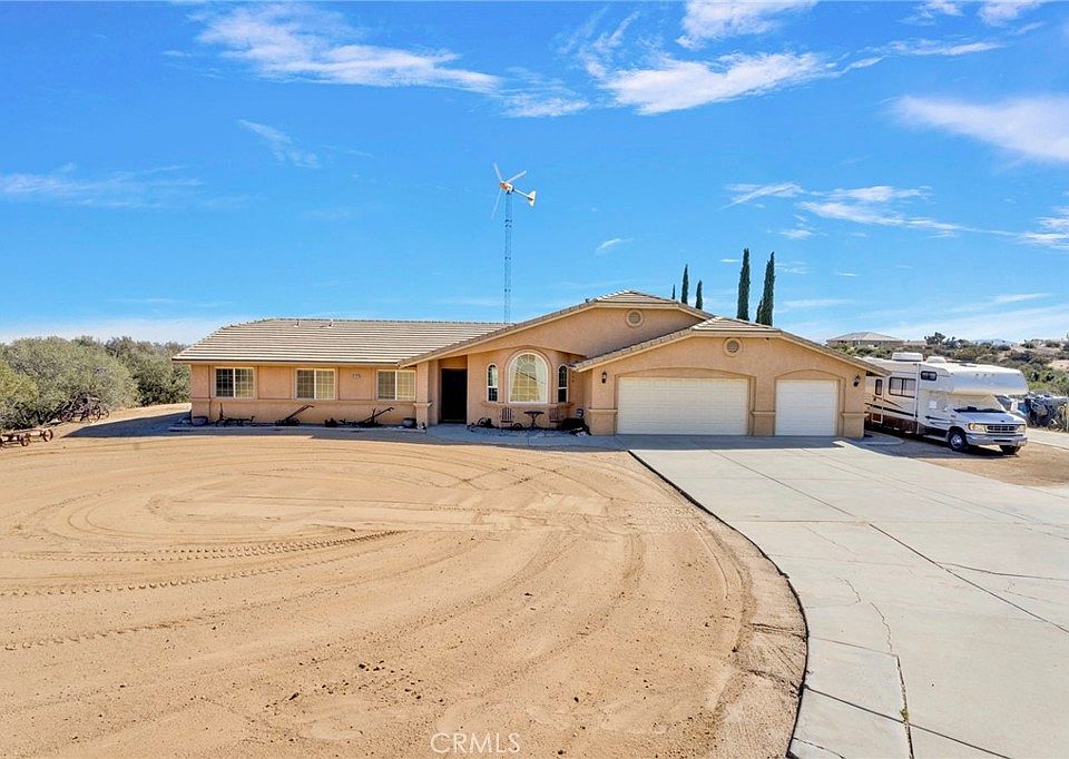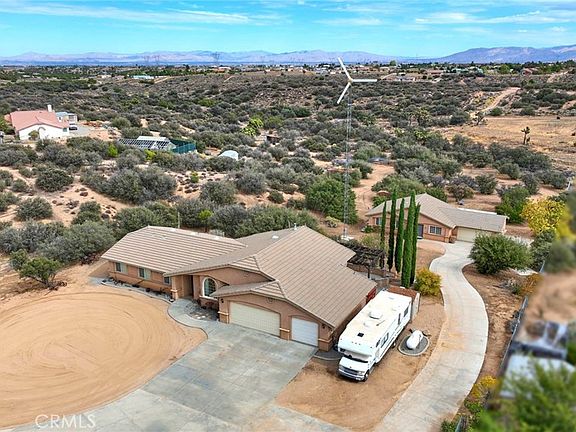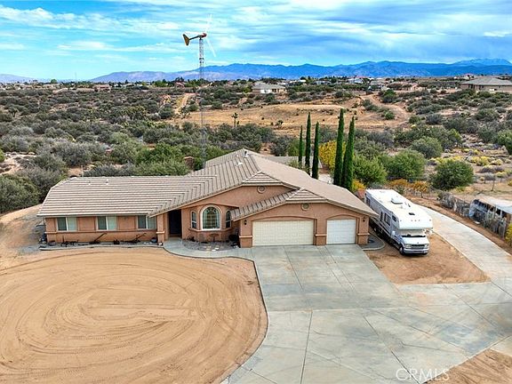 Rare Oak Hills property featuring two beautiful homes on almost 2.5 acres! The main house offers three bedrooms, an office that could easily be a fourth bedroom, and two baths. 1,699 sq. ft. with living & family rooms, cozy wood-burning stove, office w/double French doors, tile & carpet flooring, central heat/air, ducted swamp cooler, and 3-car attached garage. Outdoor features include covered patios, an outdoor pizza oven, an above-ground spa, RV parking w/full hookups, and a windmill for self-sufficient living for both homes. Are you tired of paying high utilities? These homes are for you! Second home approx. 1,120 sq. ft., three bedrooms, two baths, 2-car attached garage, central heat/air, and ducted swamp cooler. Fully fenced property includes chicken coop, garden sheds, fruit trees, and separate propane tanks for each home. Conveniently located just minutes from the freeway, offering easy access while enjoying peaceful rural living. Experience true Oak Hills country life — wide open space, comfort, and privacy all in one, surrounded by breathtaking million-dollar views!