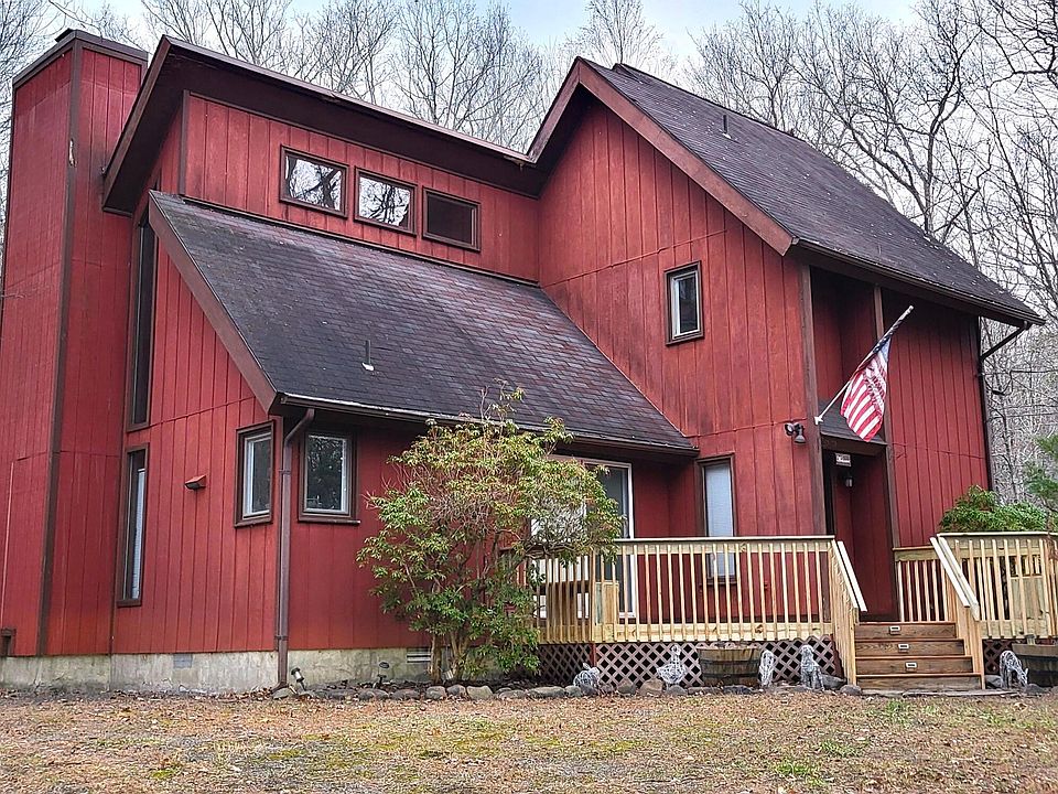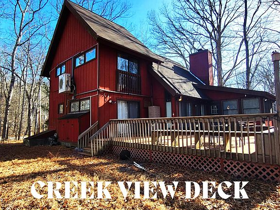 Stunning 3-bedroom creek-front contemporary home! Hardwood floors throughout, open layout, and sleek kitchen with center island. Cathedral ceilings, stone fireplace, and heated sunroom. Master bedroom with tiled bath on 1st floor. Recent improvements include newer windows. Watch the sunset over the stream from the comfort of your own deck.
