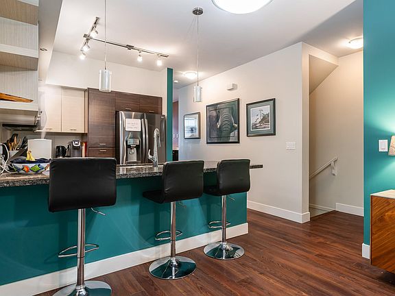Welcome to the sought-after Altura community with its upscale amenities: heated pool, hot tub, sauna/steam room, gym, yoga/pilates studio, movie theatre, fireside lounge, children's playroom, board room and two guest suites! Your new beautiful contemporary 3-bedroom townhouse features a sleek kitchen with granite counters and stainless steel appliances opens to a bright family room with oversized picture windows. Spacious living/dining area flows to a private patio surrounded by trees and shrubs. Upstairs, you’ll find generously sized bedrooms with oversized windows, offering plenty of natural light. The primary suite impresses with vaulted ceilings, a walk-in closet, and a spa-like ensuite with a luxurious walk-in shower. Walk to schools, restaurants, transit, and more.