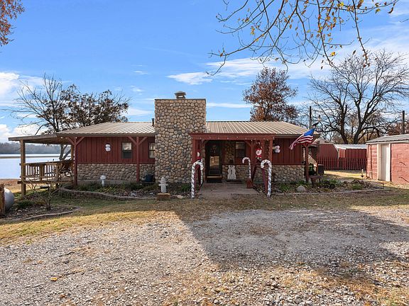 Inside, a beautiful stone fireplace anchors the living room, inviting you to curl up with a blanket and unwind after a day outdoors. The efficient kitchen and dining area keep everything close and convenient, while three comfortable bedrooms provide space for family, friends, or guests. The full bath is thoughtfully laid out, keeping things simple and functional. Outside, the property really shines. A matching barn adds character and flexibilityperfect for hobbies, a workshop, or extra storagewhile an additional storage building keeps your gear, tools, and river toys organized. With its warm cabin feel, cozy stone fireplace, and stunning river views, this charming retreat is ready to be your next getaway, full-time home, or unique rental opportunity.