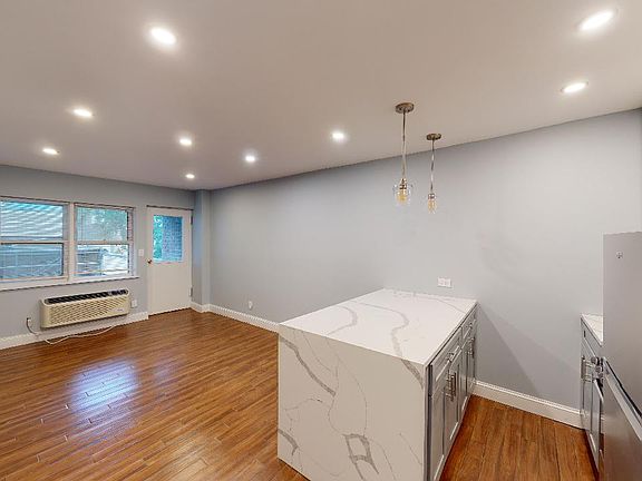 Prime Rego Park Luxury Studio with Giant Patio Terrace Pristine high end renovation, gorgeous open concept kitchen with island, quartz counters and stainless appliances with microwave Comfortable living space, can accommodate living room, bedroom furniture, and home office. Great closet space, ac/heater installed Luxurious remodeled bath, premium fixtures, fine tilework and sliding glass doors Huge patio terrace, great for any size outdoor furniture and grilling New floors, new fixtures and fine hardware, recessed lighting throughout, central air and heat Prestigious modern lobby with video intercom and 24hr surveillance, 24hr card operated laundry room on-site Super prime location, very convenient, just steps to R/M subway station (25min to NYC), any and all shops, nightlife, and restaurants immediately at your doorsteps