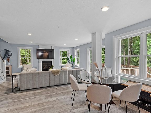 Welcome to your dream home, a stunning 4 bedroom, 2.5 bathroom residence situated on 4 acres of secluded land. This home was built in 2019 and boasts modern features and finishes throughout. As you enter the home, you'll be greeted by a grand foyer that leads into a formal dining room and a convenient half bath. The chef's kitchen is a true masterpiece, featuring soft close cabinets, a wall oven, a gas cook top, and gorgeous quartzite countertops and island. The open concept design flows seamlessly into the spacious living room, which is adorned with a cozy gas fireplace. From here, you can step out onto the deck and take in the serene views of the large backyard, perfect for hosting outdoor gatherings and entertaining guests. Upstairs, you'll find four generously sized bedrooms with 10 ft ceilings and plenty of natural light. The master suite is a luxurious retreat, complete with a walk-in closet and en-suite bathroom with a relaxing soaker tub. The convenient laundry room is also located on the second floor, eliminating the need to lug laundry up and down the stairs. This home is outfitted with Pella windows throughout, a Ring security system, and Nest thermostats for energy efficiency. The two-car garage provides ample space for parking and storage, and the basement is ready to be finished for even more living space. Attic great storage space or possible expansion.