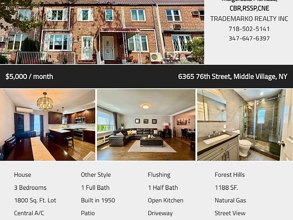 Beautifully renovated and move-in ready, this luxurious brick whole house rental in Middle Village North offers comfort, space, and convenience. Featuring 3 large bedrooms, 1.5 baths, and private parking for two vehicles (driveway + extra spot)The first floor boasts an open-concept layout with gleaming hardwood floors, energy-efficient windows, a spacious granite eat-in kitchen with an oversized island, and a sunny living/dining area. Enjoy year-round comfort with central A/C and split-system units.Upstairs are three bright, well-sized bedrooms and a full modern bathroom. The fully finished basementwith private entranceadds a recreation room, laundry area, half bath, and ample storage.