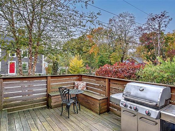 Great opportunity to invest or live-in this legal 3 unit located in a bucolic Rumford neighborhood surrounded by historic single family houses and gardens. Enjoy the views from an expansive front porch or side courtyard/deck perfect for al fresco dining or take a short stroll up the street to Seven Stars bakery/cafe or Avenue N for dining or take out. The fully renovated first floor unit features a separate entrance, 3 bedrooms with generous closet space, spacious living areas, cook's kitchen with lots of work space, storage and countertop dining plus a half bath and full bath with laundry. Head upstairs to find two charming light filled apartments both with hardwoods, replacement windows and in unit laundry. Utilities are separate with 4 electric panels and recent heat and ac systems and 2 car off street parking per unit. Taxes with homestead are $7,839.90. Just over the bridge from Providence enjoy easy access to highways, shopping, restaurants, universities and hospitals while living in peaceful surroundings.
