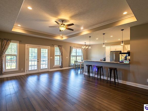 Your search is over with this delightful 3-bedroom, 2-bathroom home at 63 Allegheny Drive in Cecilia, KY. Located in the tranquil Habersham subdivision, this charming brick residence is just a 2-minute drive from Central Hardin High School, making it an ideal location for convenience. The neighborhood is perfect for relaxing strolls or bike rides. Inside, the main floor offers an inviting open-concept design that flows effortlessly from the family room—featuring beautiful trayed ceilings—into the kitchen. From the family room, step out onto a spacious covered deck that overlooks a fenced backyard, ideal for outdoor gatherings or quiet relaxation. The kitchen is a chef’s dream with sleek white cabinetry, elegant granite countertops, and stainless steel appliances, all conveniently adjacent to the laundry room and pantry. The main level also features three well-sized bedrooms, strategically located for privacy from the living areas. The primary suite is a peaceful retreat, complete with trayed ceilings and a private ensuite bathroom. Throughout the home, you'll find luxurious LPV flooring, engineered hardwood, pocket doors, and ceramic tile, adding both style and durability. Downstairs, a cozy family room offers direct access to a covered patio, perfect for additional entertainment or relaxation. The home also includes a two-car garage on the main level, as well as a utility garage on the lower level for extra storage. Additional room downstairs offers space for storage, and there is a room that has a window for ingress/egress which would help add a 4th bedroom. There is also roughed in plumbing for bath downstairs. Don’t miss the opportunity to tour this wonderful home—call today!