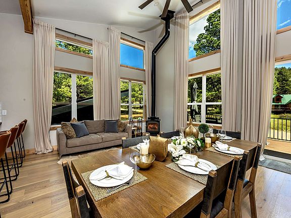 Discover unparalleled luxury and convenience in this brand-new, custom-built modern masterpiece, ideally situated just moments from the ski slopes and all the amenities Angel Fire has to offer. This is built to be low maintenance from the siding, roof metal and facia and gravel around the home. This 3 bedroom 2 ½ bath home is designed with detail in every element. The lower level consists of two guest bedrooms and an open and inviting family room perfect for entertaining loved ones. LED sensor-lighted stairs lead you up to the main floor for the kitchen, dining, living area, primary bedroom/bathroom, and guest bathroom. From heated tile in the primary and guest bathroom, custom-made curtains and custom-made knotty Alder cabinets, 8ft interior doors, windows and baseboard trim, to accented walls in the guest and primary bedroom, this home truly sets itself apart from the rest. Don’t forget the loft space with a queen-sized bed accessible by ladder that the kids and grandkids will truly love! Enjoy the heat and fireplace ambiance while entertaining friends and family with both a gas and wood burning stove. Additionally, this house has both central heat and air conditioning to achieve the perfect indoor temperature no matter what the season is. The oversized two car garage provides plenty of storage for all your mountain toys, and includes an EV charger, so you are ready to get out and enjoy the outdoors at any time! This property is perfectly positioned; just minutes away from Angel Fire Resort's $18 million Country Club and PGA-rated golf course, as well as the ski mountain and world-renowned bike park. Please note this property is in a PID, and is paid in full.