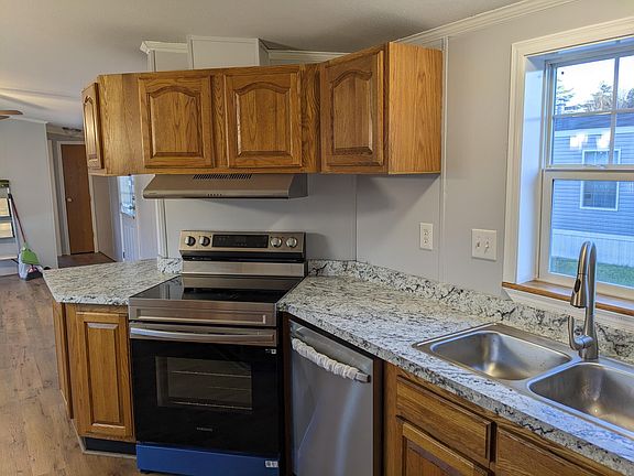 This charming, move-in-ready mobile home boasts 2 bedrooms and 2 bathrooms, each featuring skylights. The home was remodeled in 2024, including new flooring, kitchen countertops, fresh paint, refrigerator, range-electric, dishwasher, ceiling fans, skirting, toilets, and many interior doors and trim. Located in quiet Country Lane Estates, it's just 4 miles from Exit 86 and 3.7 miles from Exit 80. This 2000 Skyline home was originally installed in the park and has never been moved.