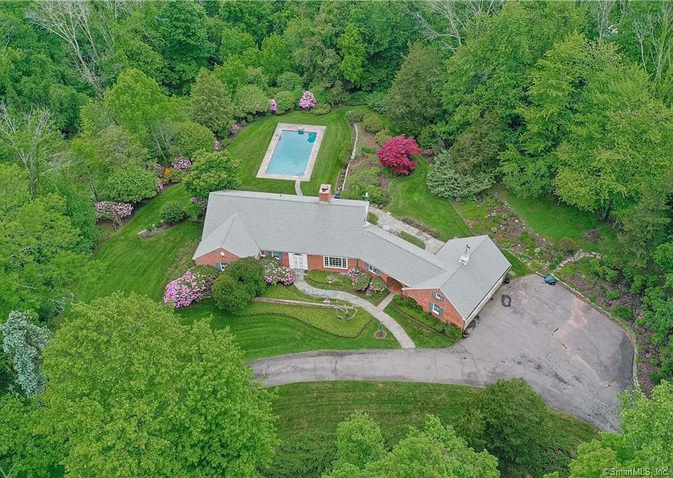 Secluded,Yet so convenient to everything! Set far back off the road on a private drive, next to Deercliff Rd. this Brick ranch is waiting for you to make it your own! Nice bucolic views set the stage for this charming, open FLRPLN hm on park-like grounds w/gorgeous perennials & surrounding natural woodlands.Imagine yourself relaxing on your patio or swimming in your pool, enjoying amazing sunset views & fabulous grounds! Inside, beyond the foyer,this home is highlighted by sun drenched rooms w/large expanses of windows to further commune w/nature.A spacious FP living room features a huge picture window embracing views of the picture perfect yard, pool& patio. A wet bar is shared by the LVNGRM & FAMRM. The FAMRM showcases a FP & wall of book cases, ideal for that casual retreat. A Formal DNGRM offers 2 custom cabinets for your dinnerware.The St Charles kitchen is timeless & provides nice storage.A picture window supplies the perfect spot for your kitchen table whem casually dining & gazing upon your outdoor patio & yard! This patio & awning is a welcome setting for those lazy outdoor meals. The 1st floor provides a MSTRBDRM & BATH, so perfect for empty nesters. Another bedroom/den w/FBTH on this level. Off the foyer is the guest powder RM.The Lower LVL presents a versaatile opportunity for an INLAW, AUPAIR, or TEENAGE SUITE w/ huge FP RECRM w/wet bar & bookcases & easy access to the pool, patio & yard. 2 more BDRMS share a FBTH.This versatile, open concept ranch awaits you! This home is off a private drive that is shared by 2 homes. It is perfectly located, minutes to RT 4 shops and Bishops Corner in West Hartford, and 20 minutes to Bradley Airport