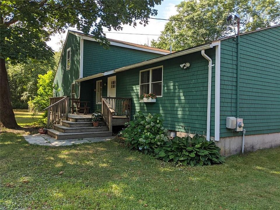 This post and beam 8 room home resides on a private 7.39 acres with many improvements which include a 7 year old roof, 2.5 year old kitchen with granite and slow closing doors and drawers, newer bathrooms, replacement thermo-pane windows, bamboo floors, central air and heat 18 months old, 200 amp service with generator back feed, and a 700 square foot workshop all on a low traveled road.
