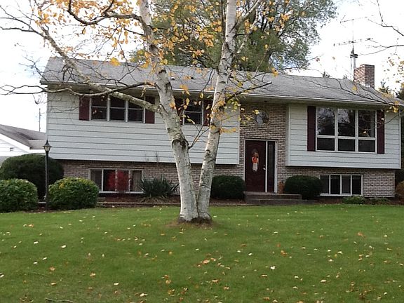 You will fall in love with this country home that is also close to town. This home, built in 1976, offers privacy in a beautiful setting atop a hill with a gorgeous view of town. Mature trees line one side of the driveway as you drive up. This home has been meticulously maintained and updated. The extremely large kitchen features quartz counter tops, a large island, many maple cabinets, oak hardwood flooring. All appliances stay including dishwasher, stove, microwave, refrigerator, washer/dryer. The large family room features a large brick heatilator fireplace. The lower level holds the 4th bedroom, laundry room, workshop and more. The back deck is a three tiered partially maintenance free synthetic deck. There is a woodshed, another wooden outbuilding, a large gazebo with screens to relax on those nice summer evenings. There are mature fruit trees and grape vines on the 3.69 acre property. A paved driveway leads you to a large attached garage. A must see!Additional property info: http://www.forsalebyowner.com/listing/4-bed-Single-Family-home-for-sale-by-owner-63-Ballou-Road-13827/23974199?provider_id=28079