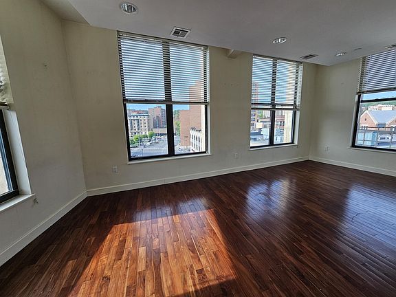 In a historic apothecary building, a two-bedroom apartment on the 5th floor. Contemporary loft design with 11ft ceilings. Wood floors throughout. Central Heat & A/C. Intercom system. Granite countertops and vanities. On-site card operated laundry. Lots of closets and large windows.
