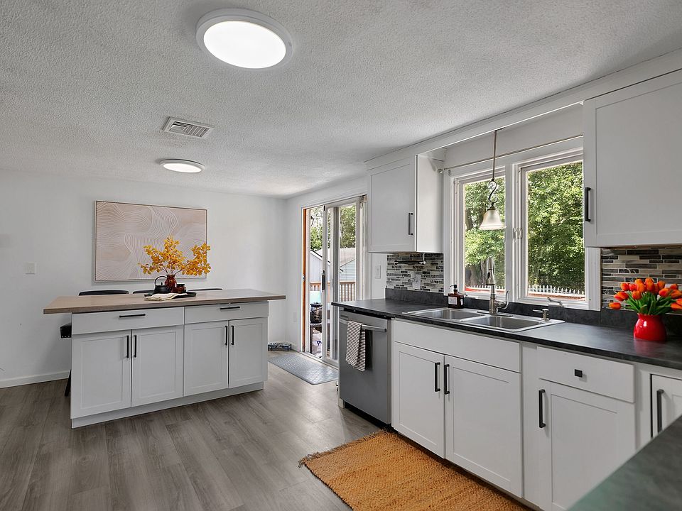 Welcome to this charming and spacious 3-bedroom ranch located in a desirable Eastside neighborhood. The brand-new eat-in kitchen is a standout feature, complete with a center island, modern finishes, and sliding glass doors that open to a large deck-ideal for outdoor dining and gatherings. You will find a 22' x 12' dining room with a vaulted ceiling, skylight, built-in bookcase, and a 22x22 living room. All three bedrooms feature hardwood flooring and are filled with natural light. There's also an additional 17' x 9' room offering endless possibilities, whether you need a home office, playroom, or additional bedroom. Other highlights include central air conditioning, a full basement for extra storage or future expansion. The exterior is just as impressive, with wavered driveway, professionally landscaped, level backyard that is partially fenced in offering both privacy and space to enjoy. The home also includes a new roof (less than one year old) and energy-efficient solar panels. This move-in-ready home combines modern updates with timeless charm in a fantastic location-don't miss your chance to make it yours.
