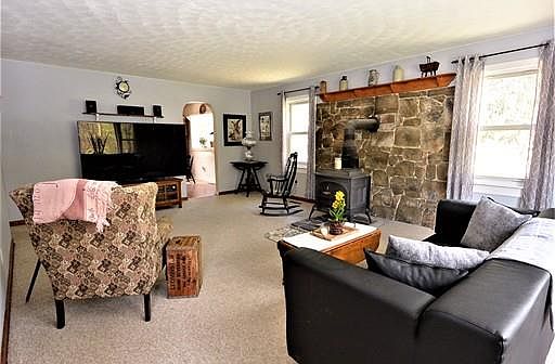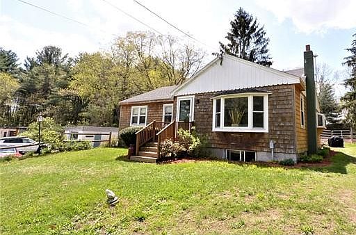 Bring your Horses because this country ranch home offers a fenced paddock and 3 barn stalls! Nice, big country kitchen features boxed out window, mostly stainless steel appliances, spacious eating area and door to back deck. Nice sized living room with stone hearth and angle bayed window. 3 good sized Bedrooms with hardwood floors, ceiling fans and full bath complete the first floor. Thereâs lots of options for the walkout lower level! Itâs "finished" with another large, eat in kitchen, a full bath, bedroom and living room with wet bar. Ideal for an inlaw style apartment. Convenient 1 car detached garage. Thereâs been many updates over the past 15 years including new septic, exterior shakes, roof, heating system, appliances, carpeting, some windows. Great opportunity for the equestrian dreamer on a small budget! Minutes to highways, shopping, restaurants, a winery and local farms and orchards.