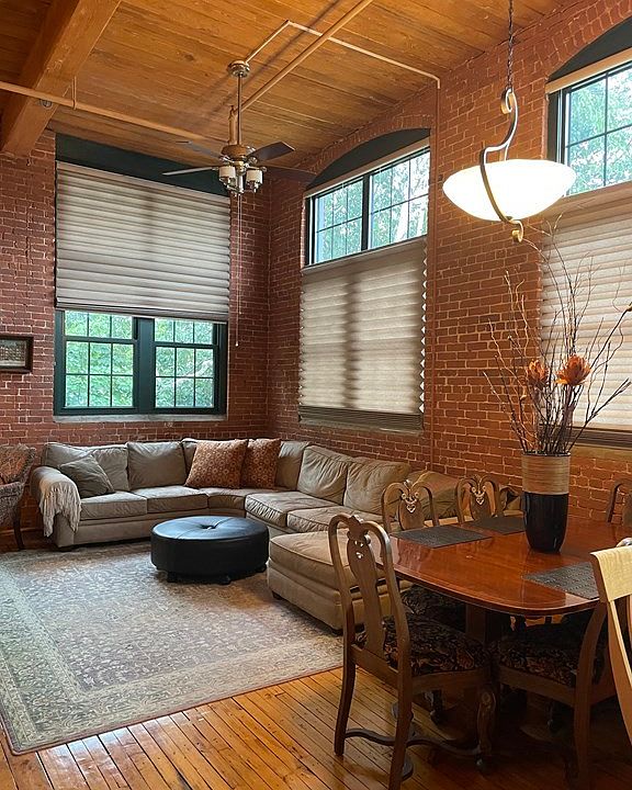 Gorgeous 2 bed, 2 bath, loft style condo. This desirable, second floor, end unit is the largest unit in the building featuring 14ft. ceilings with expansive windows.Hardwood floors throughout with exposed beam ceilings and brick outer wall. This unique condo was a mill conversion that was completely redone about 15 years ago. Large kitchen with granite counter tops, stainless steel appliances, laundry in unit & central air. Unit comes with 1 covered parking spot in the carport & offers plenty of guest parking. Lots of closets and an additional storage unit in the basement. The larger bedroom has its own bathroom & walk-in closet. The building also has an elevator and is handicapped accessible. Close to lots of restaurants, shopping,entertainment & the highway.
