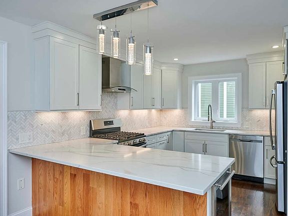Welcome to 63 Bradford Road, Unit 1. Located on a quiet street between Oakley Country Club and the Cambridge line. As close to new construction as you can get, fully renovated down to the studs in 2021 with nothing but luxury, quality and perfection in mind. Sound proofing between the flooring. Gourmet kitchen with high end stainless steel appliances, quartz counters, stylish tile back splash, island peninsula, wine refrigerator. Two of the three bedrooms are complimented with ensuite spacious full bathrooms w/double vanities. The third bedroom serves as a great guest room/office or nursery. In unit high end washer/dryer. Gorgeous dark hardwood flooring and spectacular lighting throughout. This first floor condo has one interior garage space plus exterior parking as well. Extra storage in the lower level exclusive to the unit. Topped off with professional landscaping and pavers, 63 Bradford, Unit 1 will impress and exceed expectations!! Previously rented for $4,600/month.