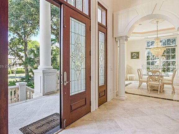 Experience stunning harbourfront living at 63 Bridgetown Road, where sweeping views of Wexford Harbour and the Clubhouse set the stage for breathtaking sunsets and elegant Lowcountry living. Two levels of rear decks, a 70' private dock, and a private pool with a covered lanai create an unmatched setting for outdoor entertaining and relaxation.Inside, the main level offers a spacious and thoughtfully designed layout perfect for both everyday comfort and hosting guests. The home features a formal living room, a cozy family room off of the spacious kitchen, a dedicated office, and a formal dining room. The main-level primary suite is exceptionally large, showcasing beautiful harbour views, dual walk-in closets, and luxurious finishes. A powder room, convenient laundry area, and easy elevator access complete this level, blending elegance with practicality.Upstairs, you'll find the second primary suite along with two additional ensuite bedrooms. A generous game room with a bar and full bath adds to the versatility of the space - it can easily serve as a fifth bedroom, media room, or entertainment area. A second laundry room adds convenience for upper-level living.On the ground level, a finished drive-through garage offers exceptional functionality with room for four or more vehicles-a rare feature in Wexford that combines practicality with luxury.As a Wexford resident, you'll enjoy world-class amenities including a private marina, championship golf, tennis and pickleball courts, croquet, clubhouse dining, a resort-style pool complex, and a vibrant year-round social calendar. Exciting improvements are underway - an expanded Clubhouse and a brand-new Harbour Center are scheduled for completion in April 2026, enhancing Wexford's already unmatched lifestyle experience.With timeless design, versatile living spaces, and spectacular sunset views, 63 Bridgetown Road stands as a truly remarkable waterfront residence in one of Hilton Head Island's most distinguished private communities.