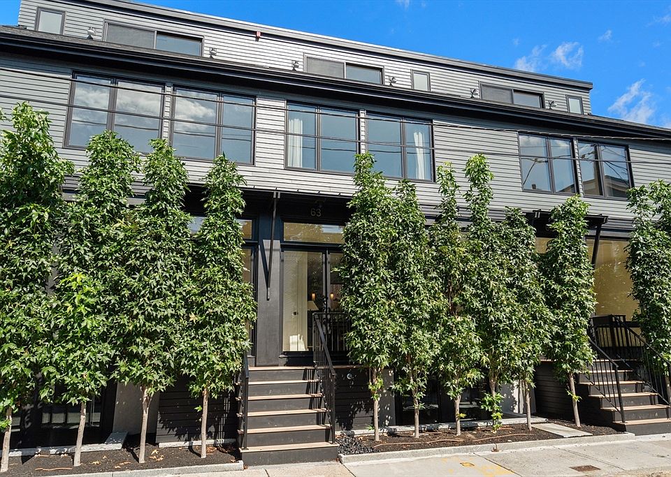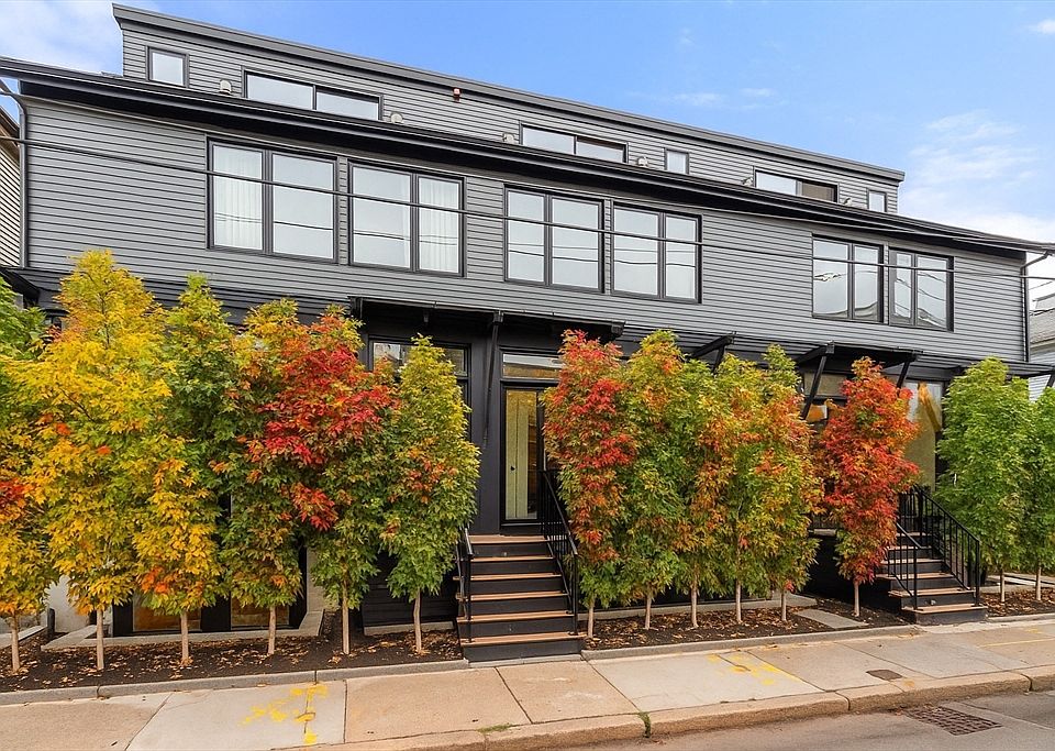 Expertly renovated & thoughtfully reimagined by a respected local builder, this bespoke home offers 4 levels of contemporary design. The main floor features an open-concept living and dining area that flows into a stunning kitchen with custom cabinetry, an induction cooktop, center island, and sliding glass doors to the 19' private patio with a landscaped garden. The second level offers 2 bedrooms: one with dual walk-in closets & access to a stylish hall bath, and another with a double closet. At the top of a skylit staircase, the serene primary suite is complete with 2 closets, an en-suite bath, and an 18' private porch beyond sliding glass doors. The versatile lower level includes a family room with laundry, full bath, and an office/guest space with a double closet. Other comforts include 4-zones of heat, central air conditioning, a fire sprinkler system, and association snow removal. Located just a few blocks to Kendall Square and sited near multiple parks & swimming pools.