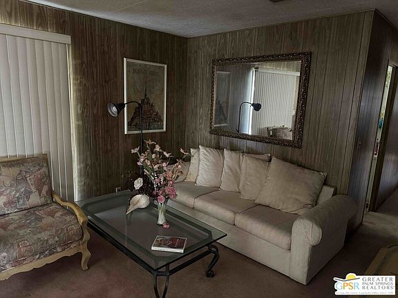 Very large 2 Bedroom 2 Bath manufactured double wide home in Palm Springs View Estates is looking for its next owner to enjoy this wonderful location in ever popular Palm Springs, CA. Filled with many original architectural finishes, keep it as is or make it your own. Palm Springs View Estates is a 55+ community and features community pools and spas. There is covered car port parking for at least two cars and the primary suite with bath ensuite is incredibly spacious. Welcome to your new home. Easy to show and visit, too!