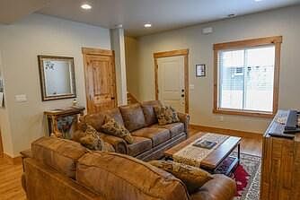 This townhouse is a 3 bed/2.5 bath and is 1625 sq ft. Comes equipped with a 2 car garage. There are 2 levels. The lower level has a large kitchen with well cared for appliances, granite counter tops, large pantry, and large living area. Upstairs has the 3 bedrooms, including a master bedroom with attached bathroom. Two bedrooms have queen beds, the other bedroom has full size bunk beds. Laundry facilities are upstairs as well, with the washer/dryer included. Flooring is laminate downstairs and carpet upstairs. Heat and A/C are electric forced air. There are walking paths throughout the neighborhood that also connect to Flathead River access.
